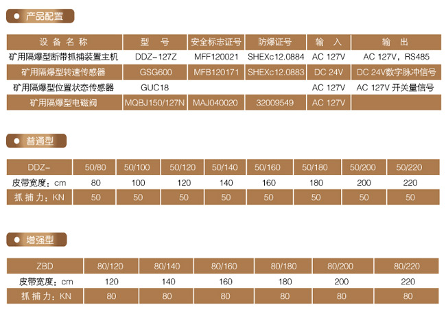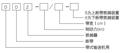 產(chǎn)品概況: DDZ-80型帶式輸送機(jī)用斷帶保護(hù)裝置,是根據(jù)《煤礦安全規(guī)程》第三百七十五條的規(guī)定:鋼絲繩芯帶式輸送機(jī)應(yīng)設(shè)斷帶保護(hù)裝置要求,而專門設(shè)計(jì)的機(jī)電一體化智能型的專用產(chǎn)品。主要用于煤礦井下皮帶機(jī)的皮帶在斷帶、倒帶情況下的保護(hù)和監(jiān)測(cè)。 工作原理: 安裝于皮帶下方的速度傳感器實(shí)時(shí)檢測(cè)皮帶的運(yùn)行狀況,當(dāng)運(yùn)行中的皮帶速度異常(斷帶或倒帶)超出設(shè)定范圍時(shí),該檢測(cè)信號(hào)(數(shù)字脈沖信號(hào))傳輸?shù)娇刂浦鳈C(jī)(PLC),控制主機(jī)隨機(jī)進(jìn)行數(shù)據(jù)處理并發(fā)出相應(yīng)的控制指令,控制斷帶抓捕器機(jī)構(gòu)動(dòng)作,迅速抓捕住斷帶下滑或倒帶運(yùn)行中的皮帶,從而將事故控制在初始階段,防止事故的進(jìn)一步擴(kuò)大。同時(shí)切斷皮帶輸送機(jī)控制回路電源,防止皮帶與驅(qū)動(dòng)滾筒產(chǎn)生摩擦,并控制聲光報(bào)警器發(fā)出信號(hào)報(bào)警。 產(chǎn)品型號(hào)說明: